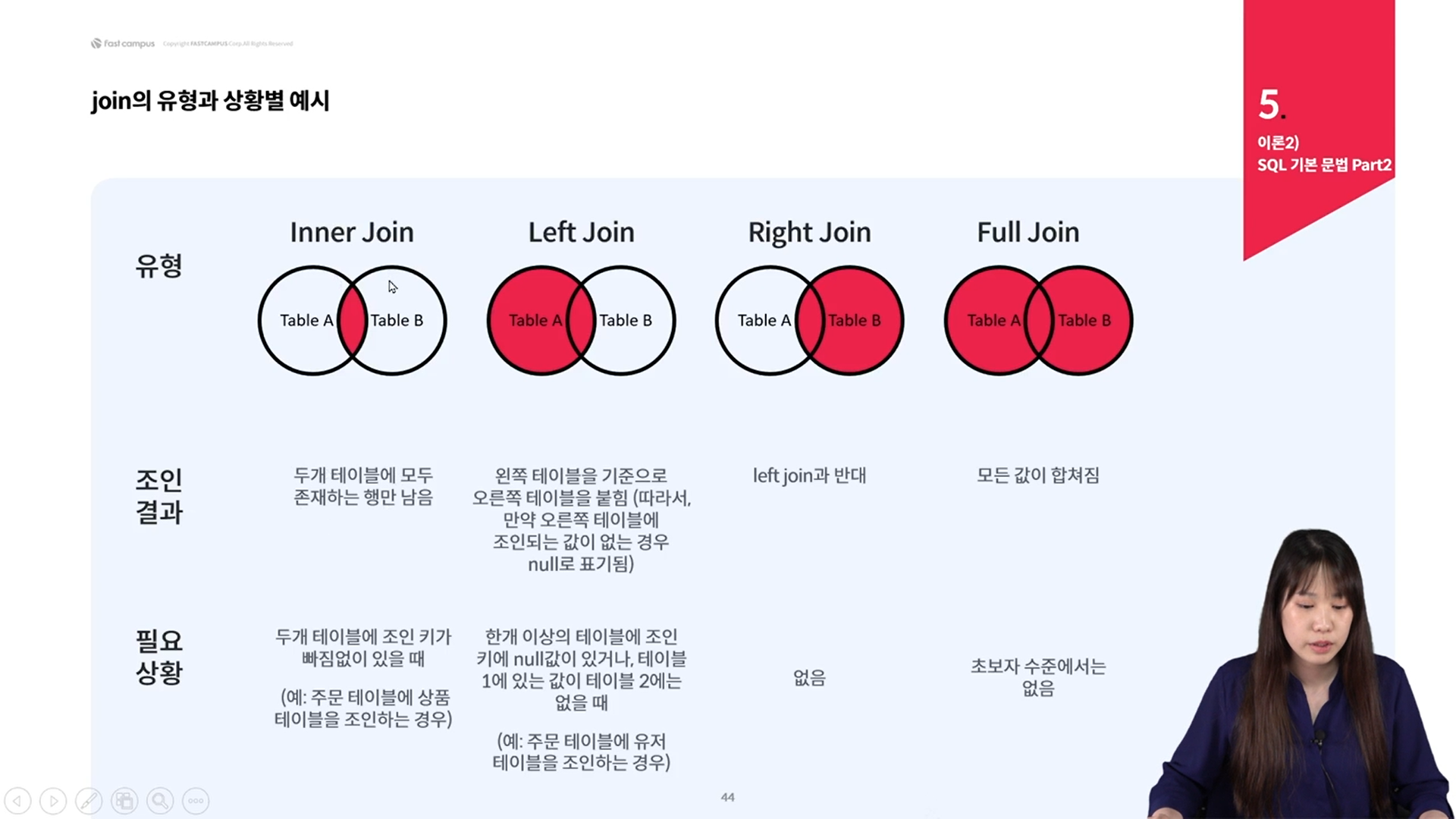 1) 행 중복: 중복값이 있으면 조인 결과 중복이 발생한다 > 중복값은 알아서 관리해야 한다
