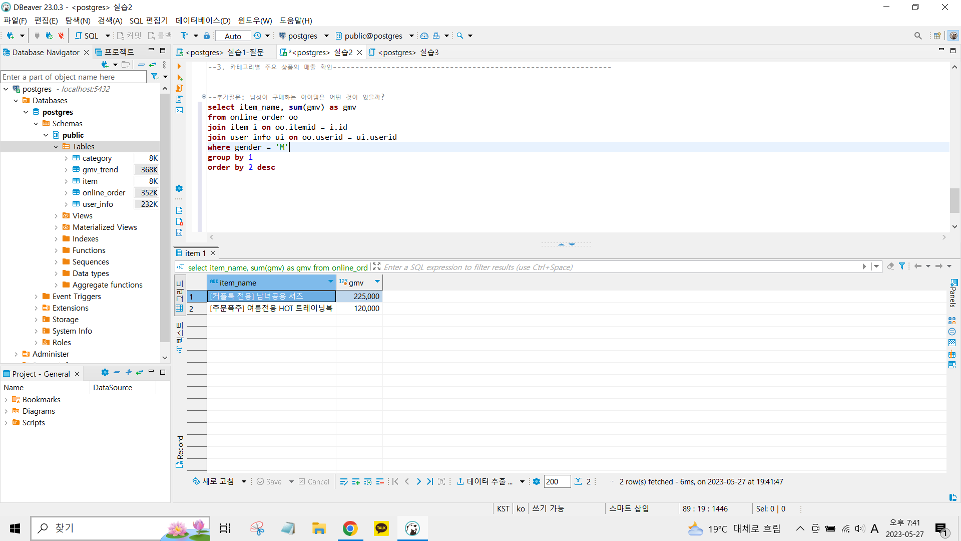 | 4. 데이터 연결: 상품별 매출액 (join절) |