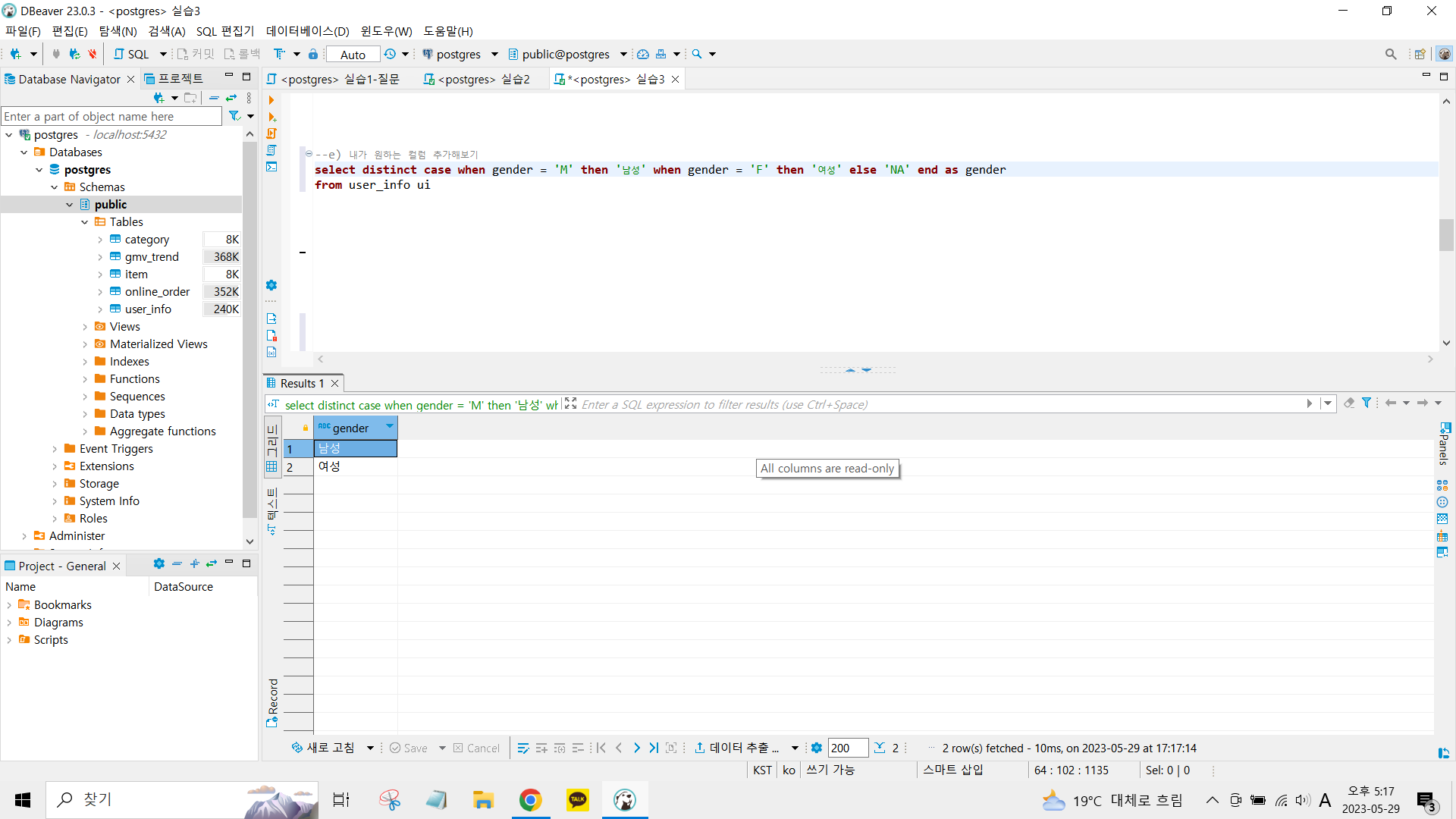 | 1. 성별 컬럼 추가하기 | : case when |