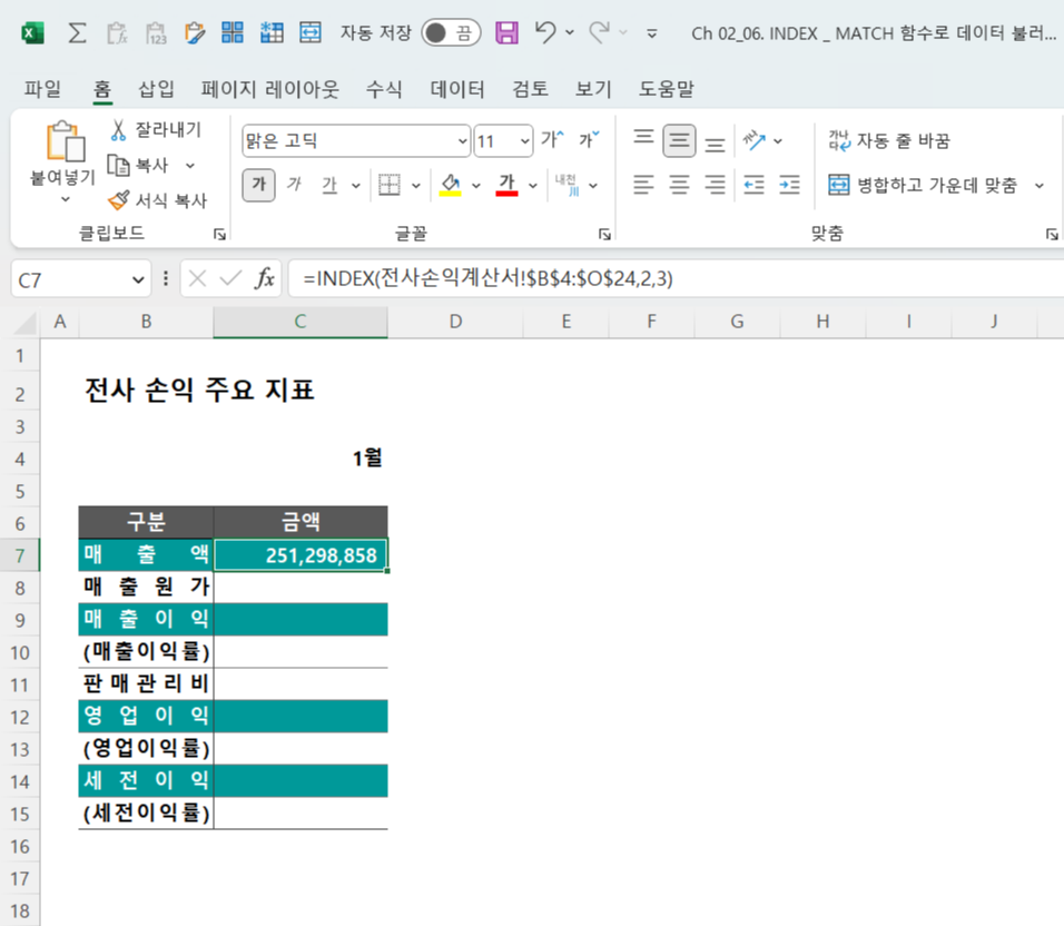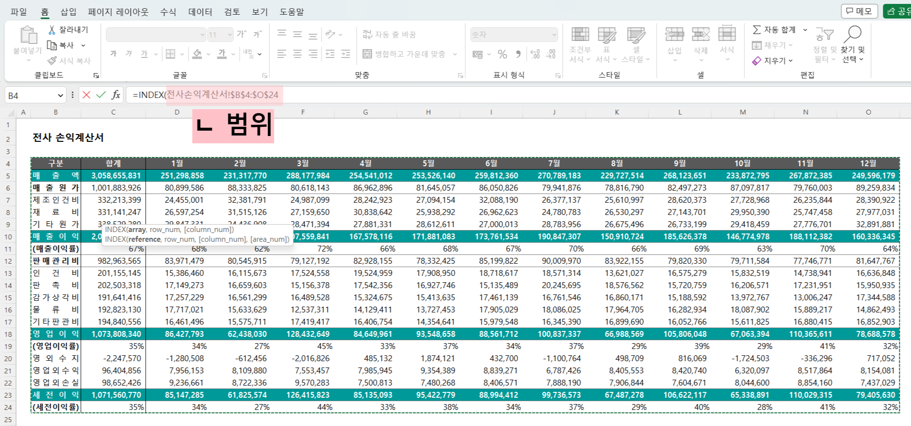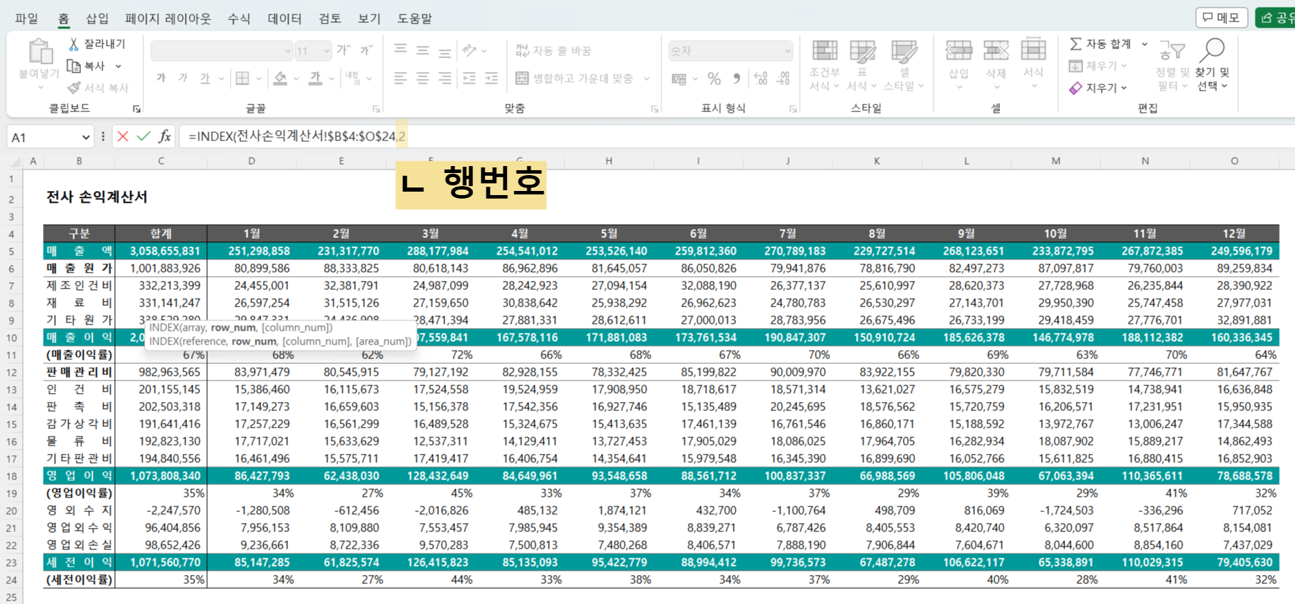 = INDEX(전사손익계산서!$B$4:$O$24,