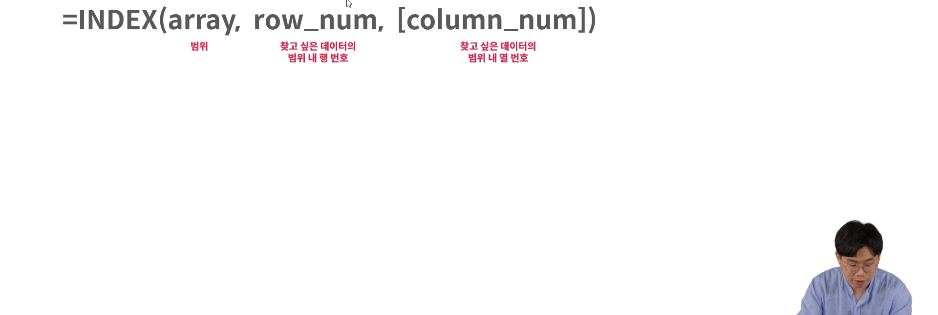 특정 범위에서 행 번호와 열 번호로 원하는 데이터를 불러오는 함수