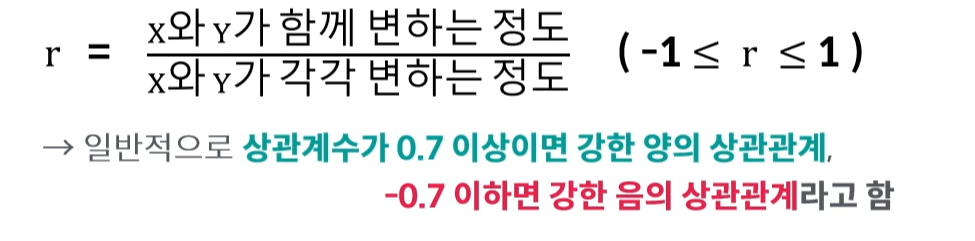 두 변수 사이의 상관성을 나타내며 일반적으로 피어슨(Pearson) 상관계수를 사용