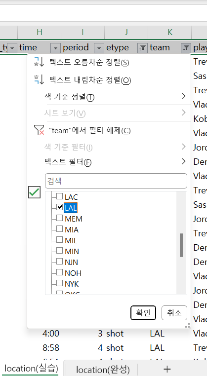 | [엑셀] 실습 2: LA레이커스 날짜 데이터 분석 (0) | 2023.06.30 |