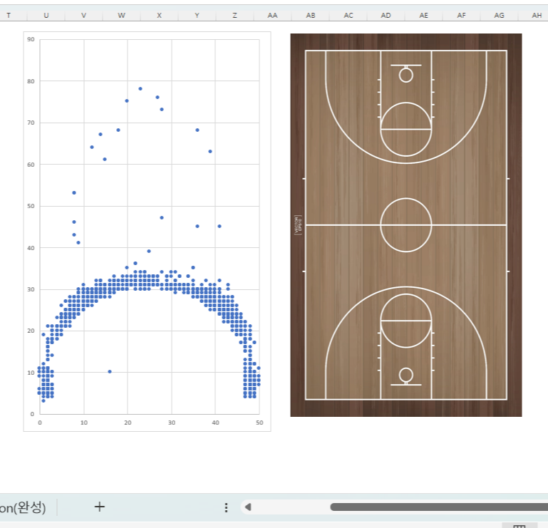 *시각화 :선수들의 3점슛 위치를 농구코트 위에 표시해보자