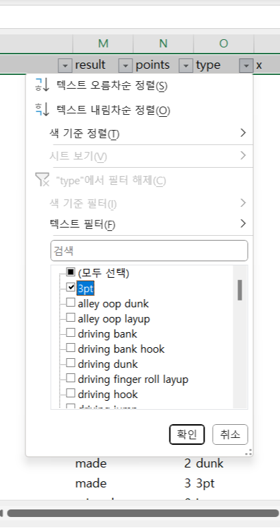 3) 성공한 3점슛만 다른 색으로 표현하기
