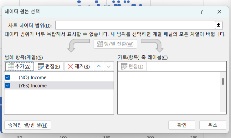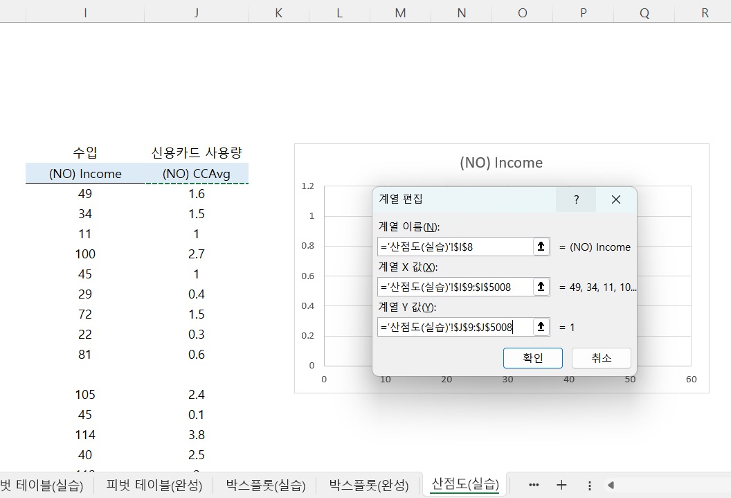 - NO집단의 데이터를 삽입하여 분산형 그래프를 그린다.