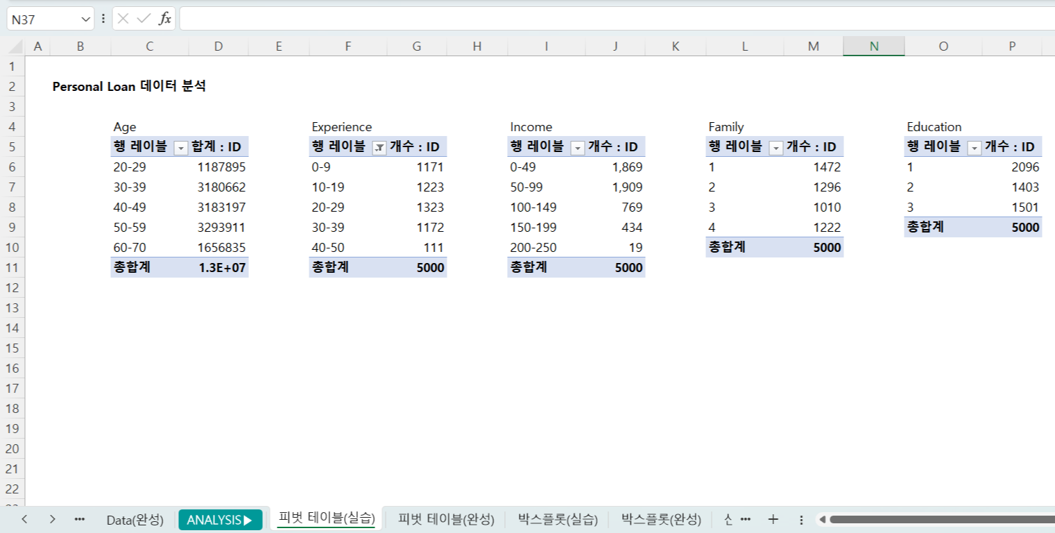 - 다른 데이터(경력연수, 수입, 가족수, 교육년수)도 해석하기 편한 단위별로 그룹화를 해준다