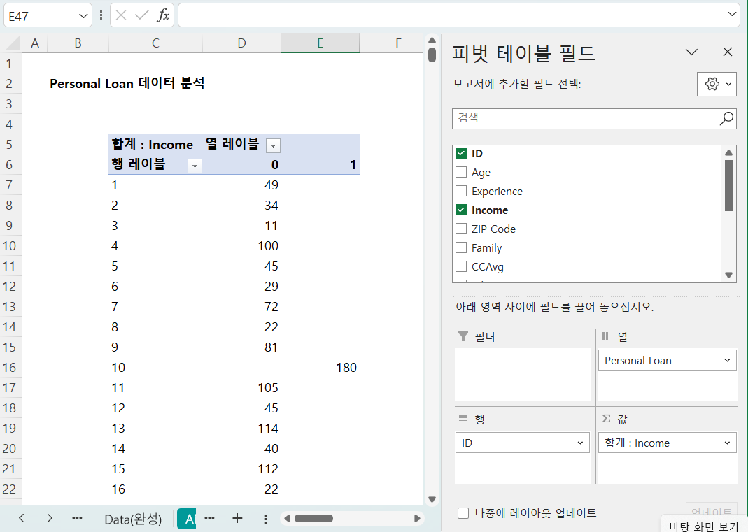 ㄴ 왜냐하면 피벗 테이블에 있는 데이터를 넣을 수 없기 때문