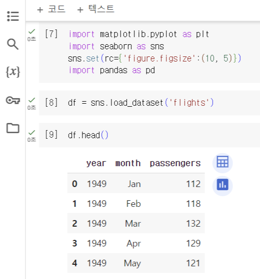 'flights'라는 데이터셋을 df라는 변수에 입력해주고,