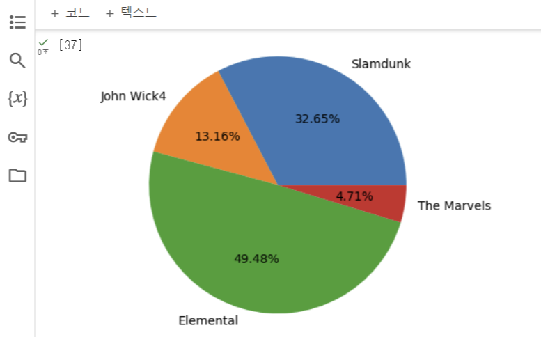 문제: 영화 관람객 수를 원형차트로 작성하시오 |