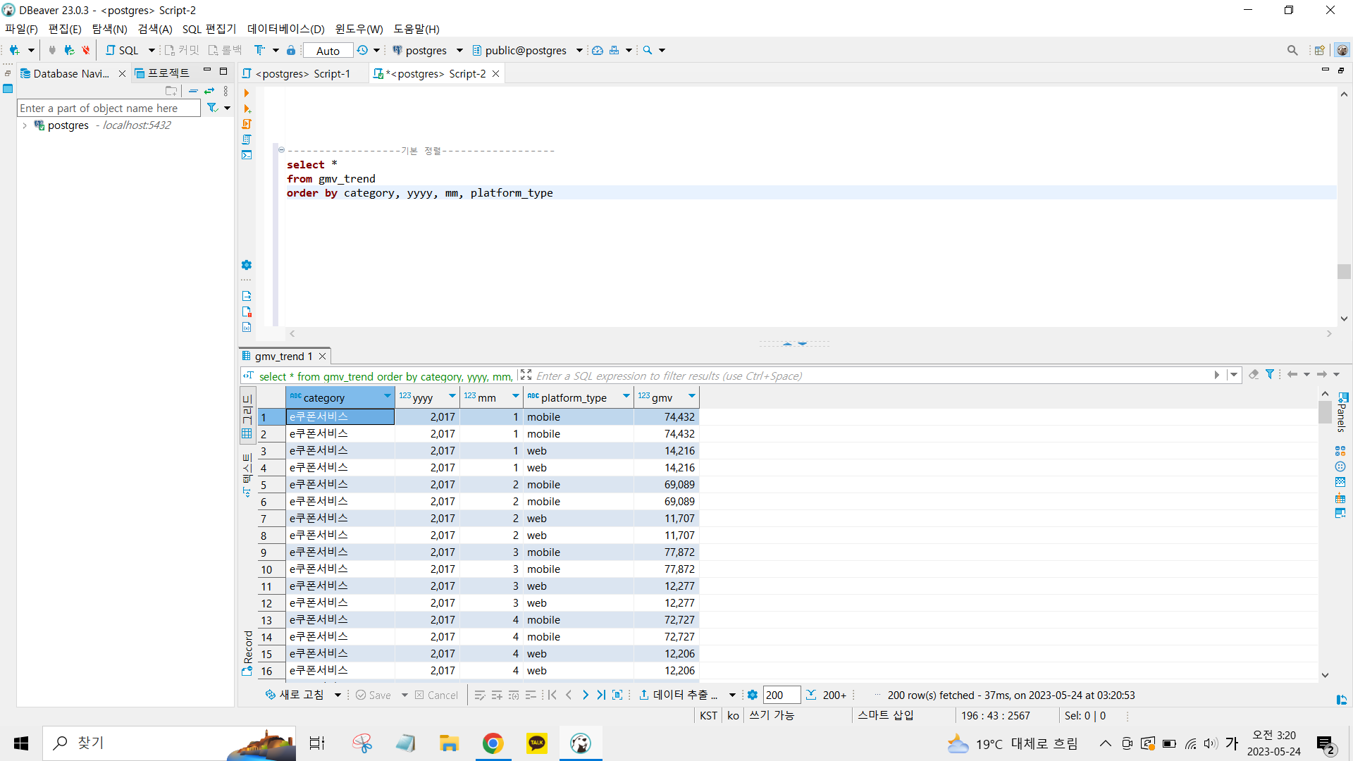 order by category, yyyy, mm > 가나다 순으로 정렬, 연도별, 월별로 정렬